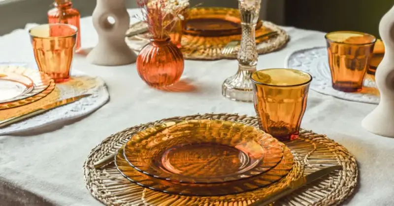 - N’oubliez pas la transparence : quelques verres colorés ou un pichet ambré apportent un supplément d’âme à la table.