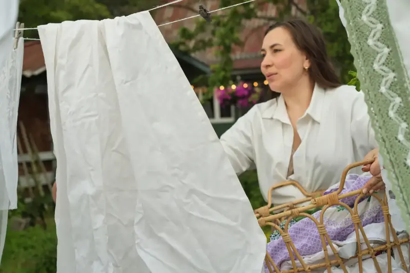 - Privilégiez le séchage à l’air libre, de préférence dehors : le vent et le soleil apportent un supplément de souplesse.