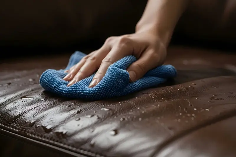 Un geste crucial : appliquer un soin nourrissant (crème ou lait spécial cuir) une fois la pièce sèche pour restaurer l’élasticité et la couleur.